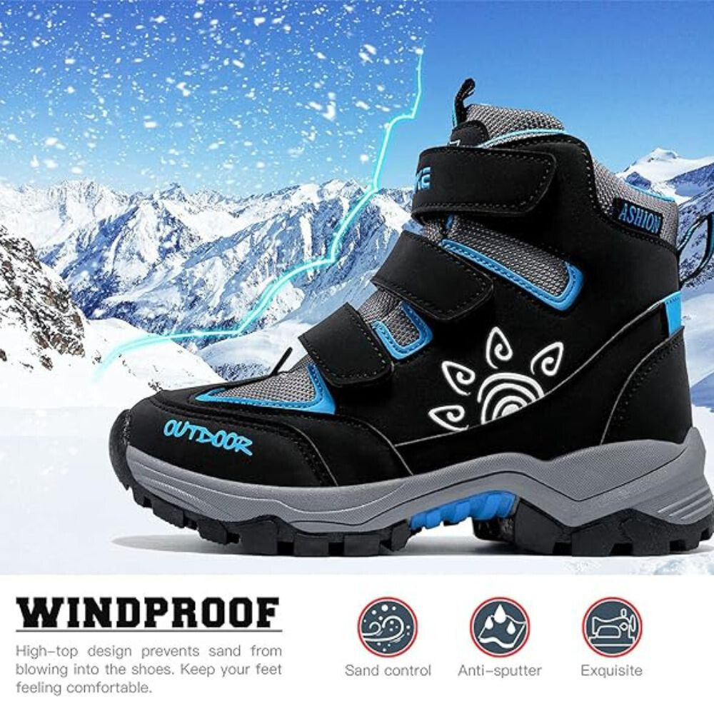 Puha és kiváló minőségű műbőr felsőrésszel és hálós anyaggal a tartósság és a kényelem érdekében. Víz- szél- és hóálló cipő.