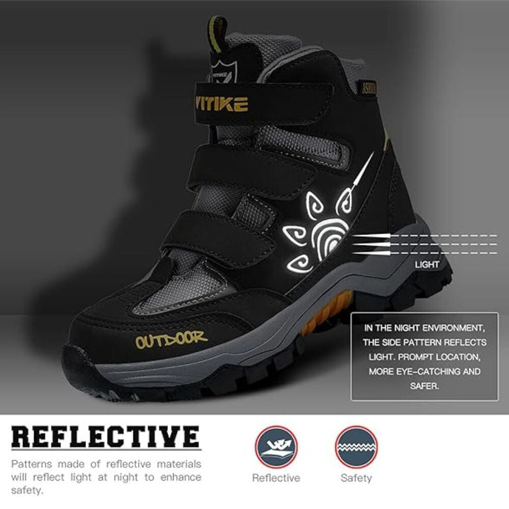 - Puha és kiváló minőségű műbőr felsőrésszel és hálós anyaggal a tartósság és a kényelem érdekében. Víz- szél- és hóálló cipő.