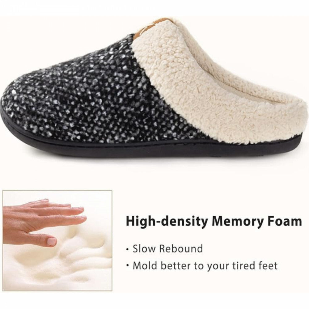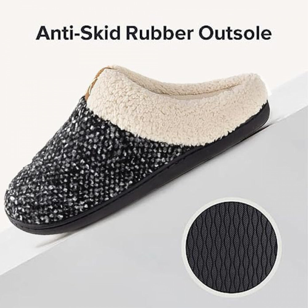 - ULTRAIDEAS Memóriahabos Téli Mamusz – Fekete-Fehér, 44–45-ös, Meleg Benti Papucs