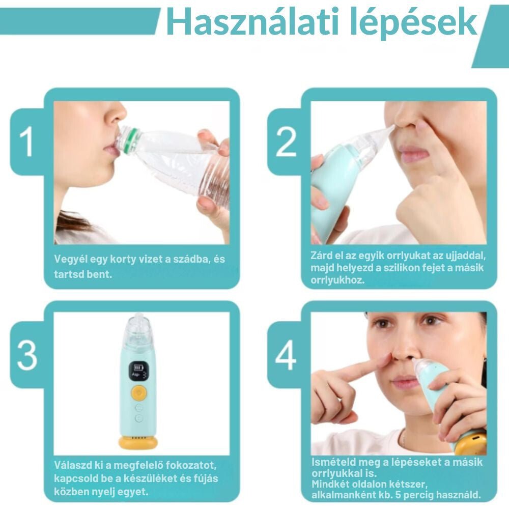 Ez az elektromos baba orrszívó gyógyszermentes, nem invazív megoldást kínál az orrdugulás enyhítésére. Segít a babának könnyebben lélegezni, javítja az alvás minőségét és hozzájárul a mindennapi komfortérzethez. Megbízható segítség minden szülő számára, aki biztonságos és hatékony megoldást keres gyermeke orrápolásához.