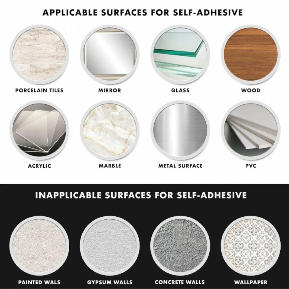 - Egyszerű telepítés: Fúrásmentes rögzítés, amely nem károsítja a falakat vagy csempéket.