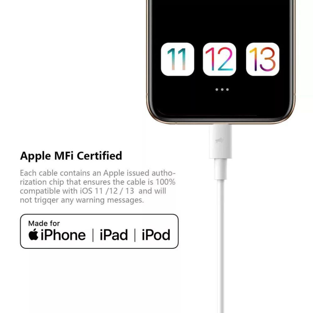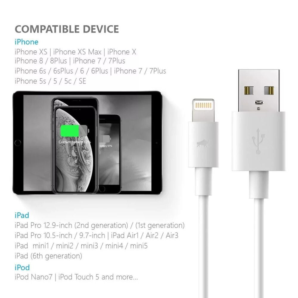 - Tökéletes kompatibilitás - Az MFi-tanúsítvánnyal rendelkező kábel kompatibilis, az összes 8 tűs csatlakozóval rendelkező, Apple eszközzel: iPhone XS / XS Max / XR / X / 8 / 8/7 Plus / 7 / 6s Plus / 6s / 6 Plus / 6 / 5s / 5c / 5 / SE / iPad / iPod, valamint a legújabb iOS rendszerrel.