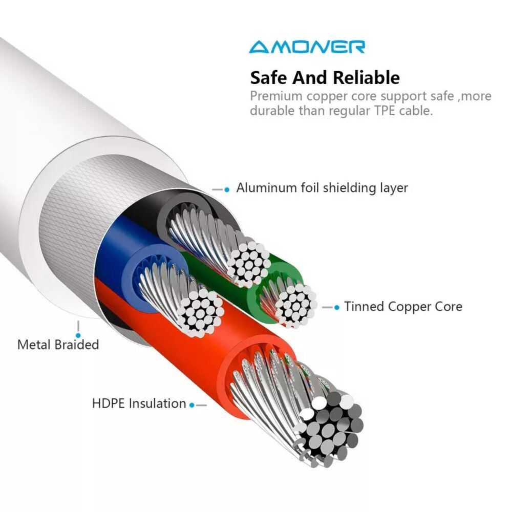 - Tanúsított Apple MFi Am - Amoner iPhone kábel, egy Apple hitelesítő chipet tartalmaz, amely, biztosítja az eszköz szinkronizálását és maximális sebességű, és biztonságos töltését.