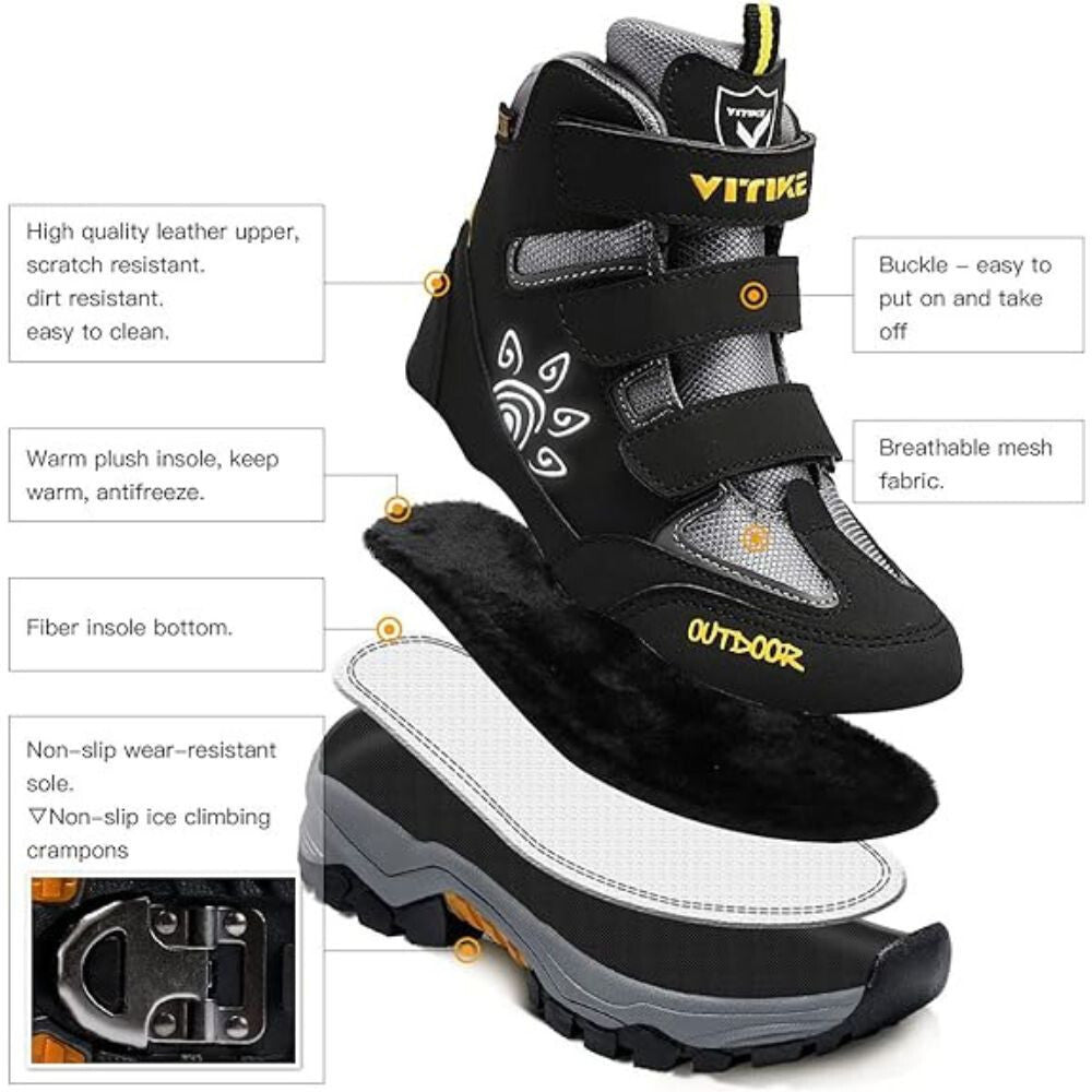 - Puha és kiváló minőségű műbőr felsőrésszel és hálós anyaggal a tartósság és a kényelem érdekében. Víz- szél- és hóálló cipő.