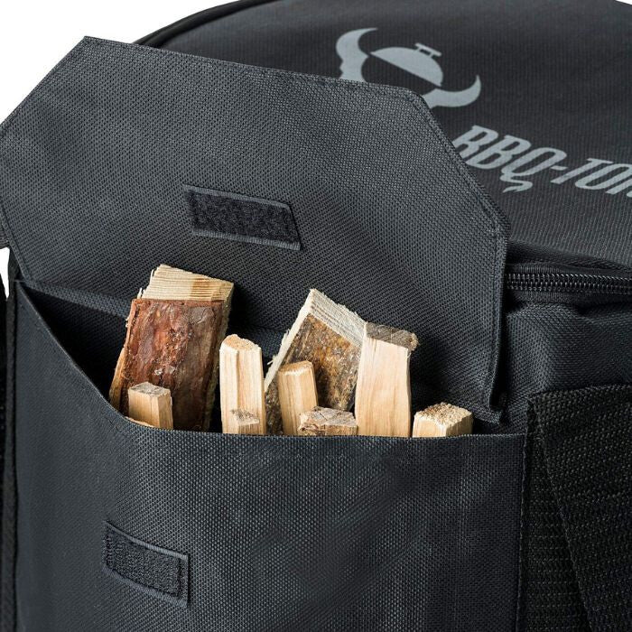 A táska elején található praktikus, tépőzáras zseb lehetővé teszi kisebb grillfelszerelések vagy hasított falécek tárolását és szállítását.