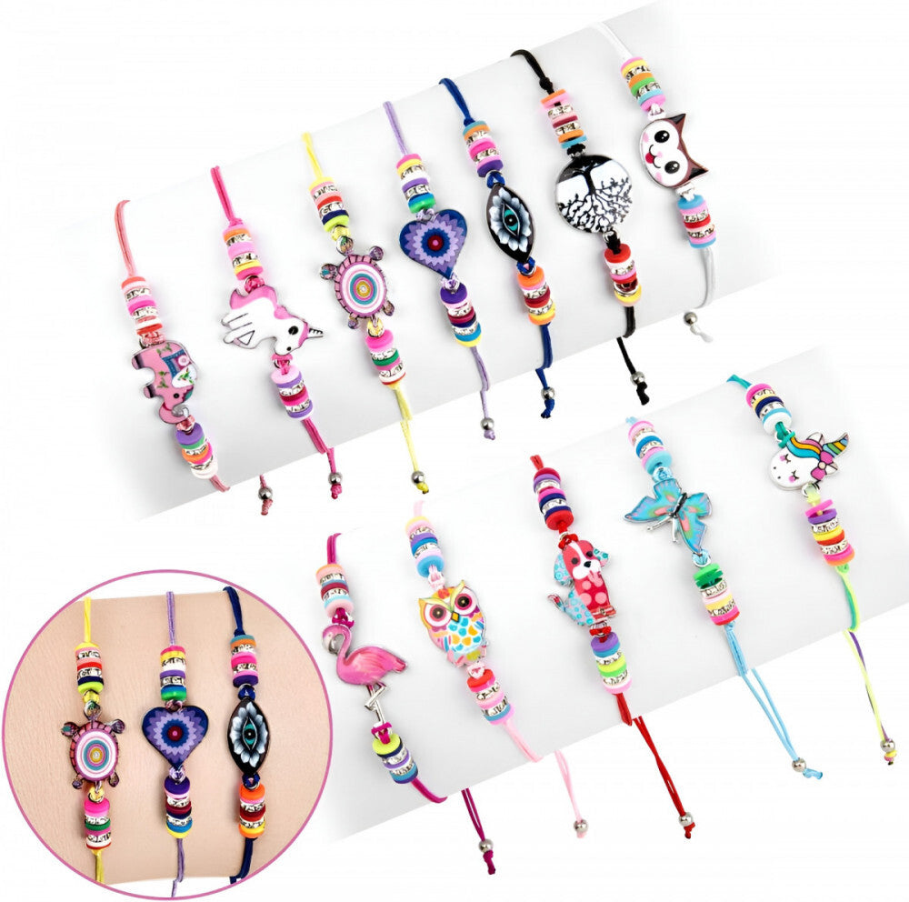 - A kézzel fonott darabokon nem csak az elragadó unikornisok, hanem más kedvenc állatok – mint a flamingó, kiskutya, elefánt, cica, pillangó és teknős – is helyet kaptak, így minden karkötő egy-egy különleges történetet mesél el.