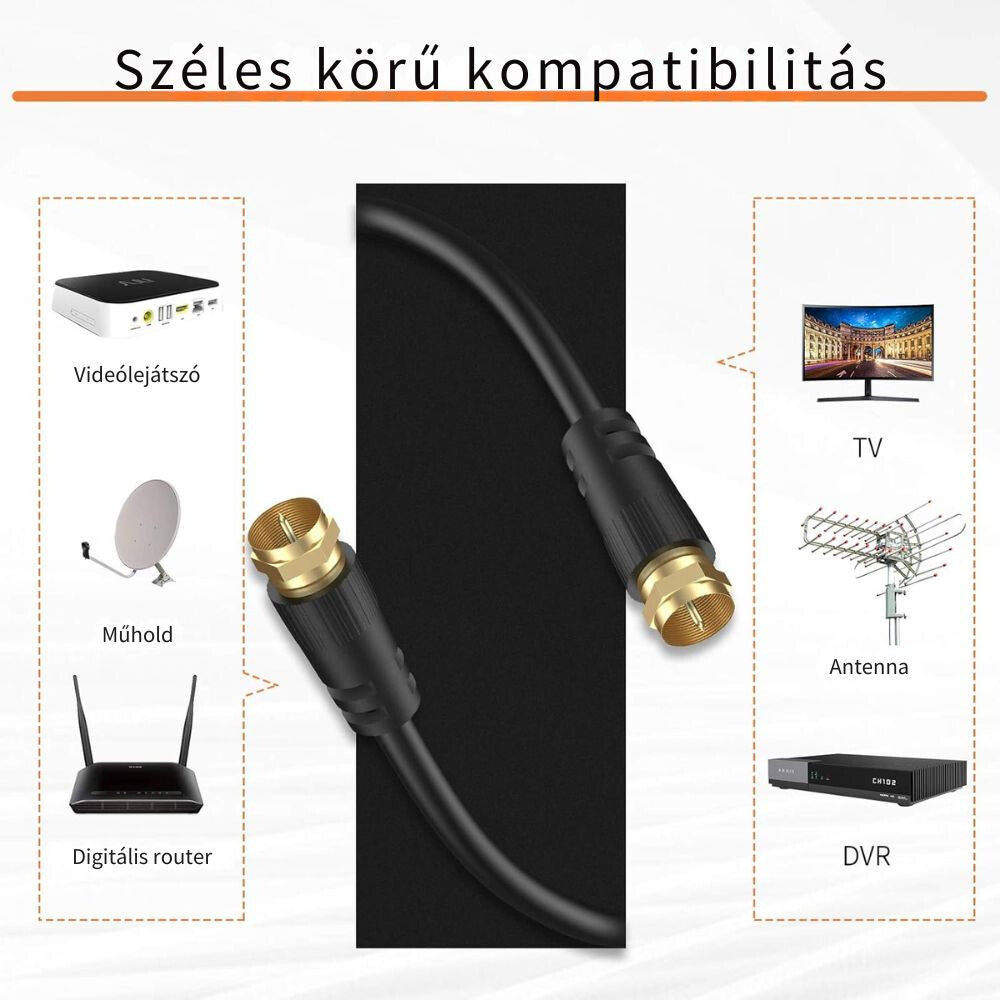 • F–F csatlakozó (csavaros kivitel) – erős, stabil rögzítés, nem lazul ki