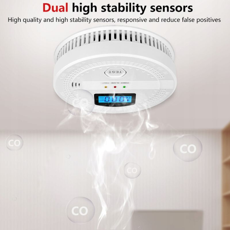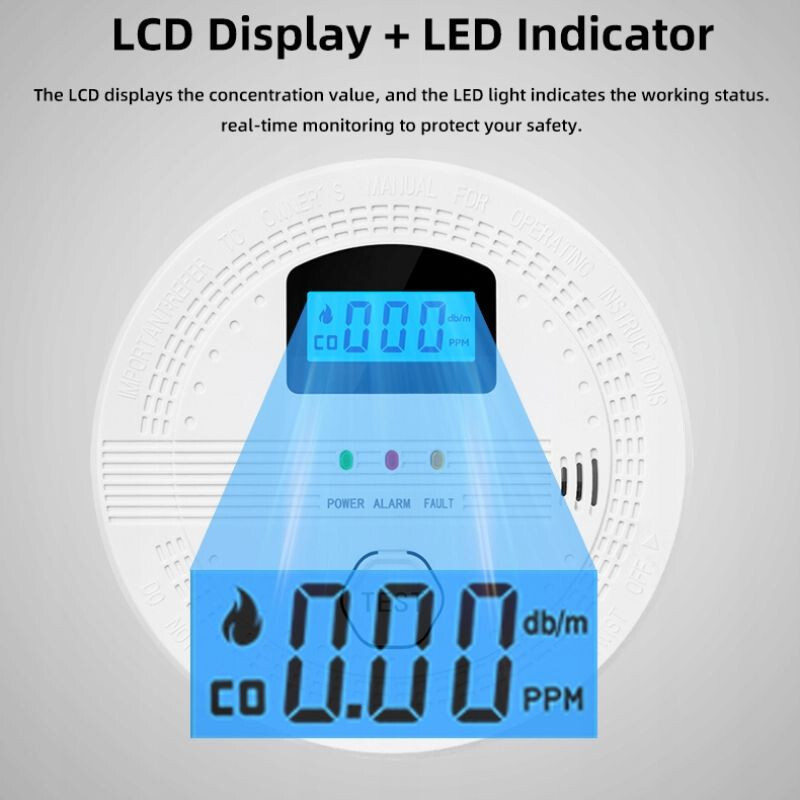 Sorgen Sie für die Sicherheit Ihrer Familie und Ihres Zuhauses mit modernen,mit kabellosem Kohlenmonoxid- und Rauchmelder, die gleichzeitig unsichtbare Bedrohungen erkennen könnenKohlenmonoxid (CO)und dieRauchDas Gerätmit eingebautem LCD-DisplayEs verfügt über ein Display, das den CO-Wert und den Status des Geräts in Echtzeit anzeigt.