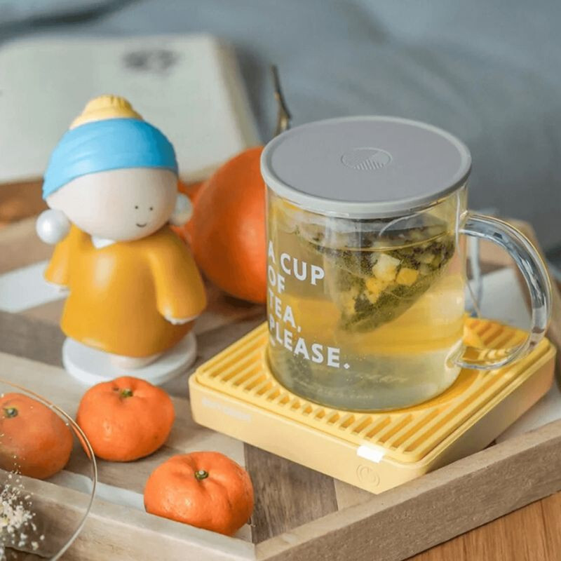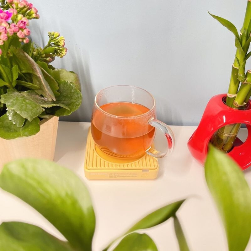 Tassenwärmer von Buydeem mit zwei Temperatureinstellungen, One-Touch-Steuerung und automatischer Abschaltung nach 12 Stunden. Extra breite Heizfläche, BPA-freie Silikonhülle, rutschfeste Sohlen und wasserdichtes Design. Ideal für zu Hause, das Büro oder auf Reisen.