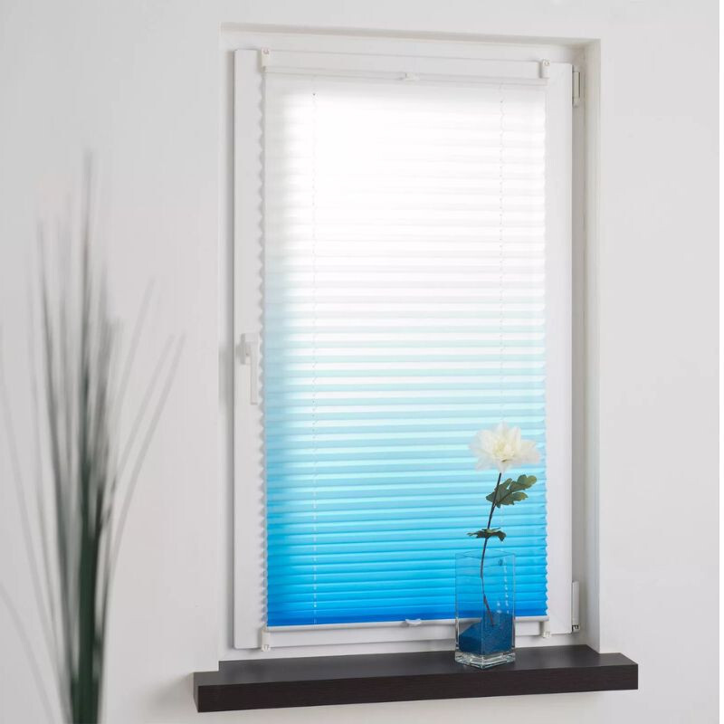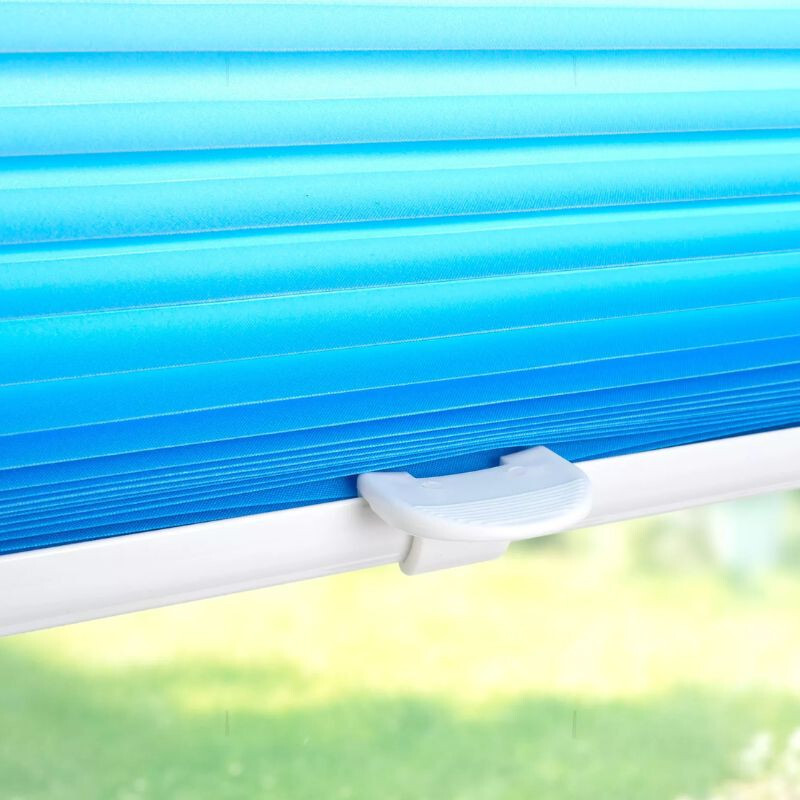 Stilvoll und praktisch blaue Plissees 120 x 130 cmdas ist perfekt Schutz vor Einblicken und sorgt für eine angenehme Lichtdurchlässigkeit. DER gespanntes Design Es bleibt auch bei seitlich geöffnetem Fenster stabil, Klemmen und ermöglicht die bohrfreie Montage. Es hat ein klassisches Aussehen, ist einfach zu bedienen und ideal für jeden Raum.