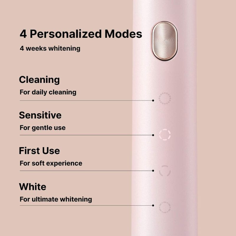 Dermehrere Reinigungsmodiermöglicht dem Benutzer die Auswahl nach seinen Bedürfnissen: Intensivreinigung, Schonmodus oder Polieren sind ebenfalls verfügbar, sodass die Mundpflege immer individuell gestaltet ist. Das ergonomische Design sorgt für einen angenehmen Griff und das rosa Design verleiht ein frisches, feminines und elegantes Aussehen.