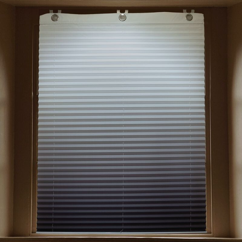 Eine moderne und praktische Beschattungslösung für Ihr Zuhause! Das Plissee-Rollo in Weiß-Grau mit Farbverlauf bietet mit 100% Lichtschutz und eleganter Optik perfekten Licht- und Sichtschutz. Kein Bohren, einfach zu installieren, Kabelbetrieb. Eine ausgezeichnete Wahl für das Wohnzimmer, Schlafzimmer oder Büro.