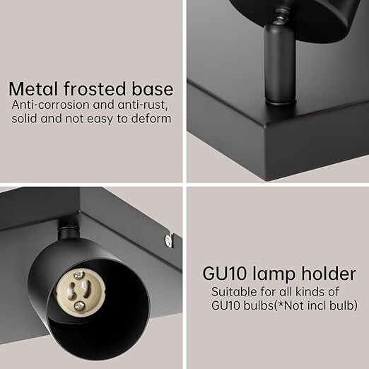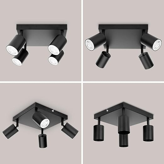 Ketom Drehbare, Verstellbare 4-Wege Deckenleuchte mit GU10 LED Lampensockel, Moderne Schwarze Metall Deckenleuchte für Küche, Schlafzimmer und Wohnzimmer