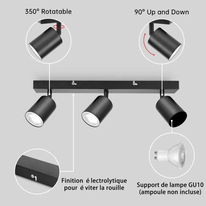 Produktmaterialien: Das verwendete Metallmaterial ist Eisen, das solide ist und nicht leicht beschädigt werden kann. Das Produktgewicht der GU10 Deckenleuchte beträgt nur 650g.