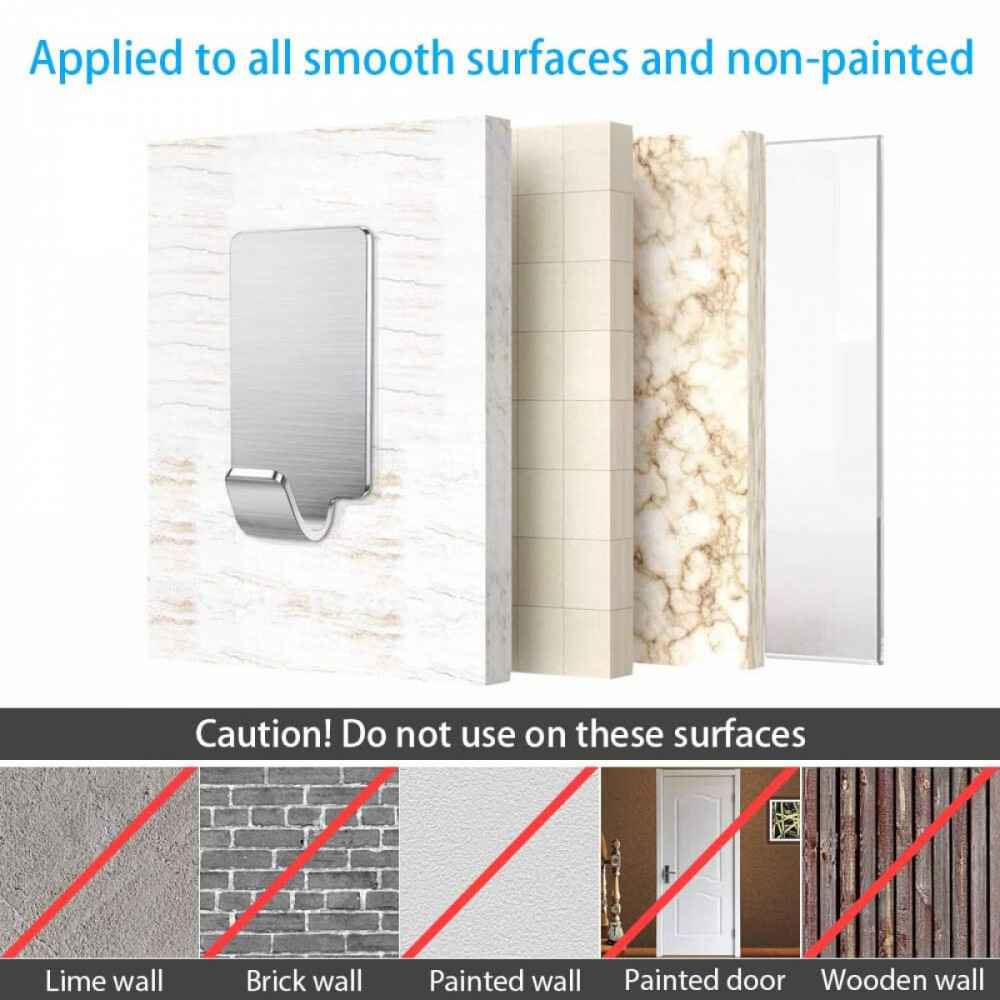 Die Edelstahlhaken bestehen aus Edelstahl 304,der sehr stabil und korrosionsbeständig ist. Es verfügt über ein platzsparendes Design.Starke Viskosität: 3 M selbstklebende Haken, starke Haftung, wasserdicht, hält einem Gewicht von 5–8 kg stand. Warten Sie nach der Installation 24 Stunden, bevor Sie etwas aufhängen.Ziehen Sie einfach die vordere Schutzfolie ab, entfernen Sie den hinteren 3 M -PE-Schaum und schieben Sie ihn dann einfach und bequem an die Wand. Haken ohne Bohren, beschädigt die Wand nicht.Edelstahlhaken für verschiedene Oberflächen: Fliesen, Glas, Holz, Kunststoff, Edelstahl, Metall usw. Unverzichtbar in Ihrem Zuhause, Flur, Schlafzimmer, Badezimmer, Küche, Kleiderschrank, Büro, Schlafsaal. usw.Der selbstklebende Haken aus Edelstahl ist stilvoll, funktional und modern im Design und eignet sich hervorragend für Mäntel, Bademäntel, Hüte, Handtücher, Küchenutensilien, Regenschirme, Schlüssel usw. zum Aufhängen.