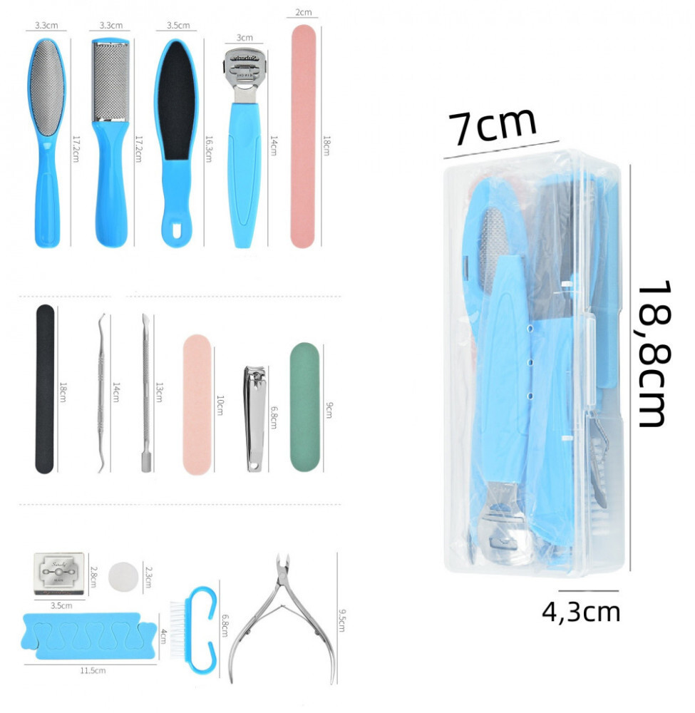 19 -teiliges Fußpflege- und Pediküre-Set für weiche und gesunde Füße und gepflegte Nägel.Werkzeuge, die leicht zu reinigen sind. Dank der geringen Größe des Pakets lässt es sich leicht verstauen und transportieren, sodass wir auch auf Reisen nicht auf weiche Füße verzichten müssen.