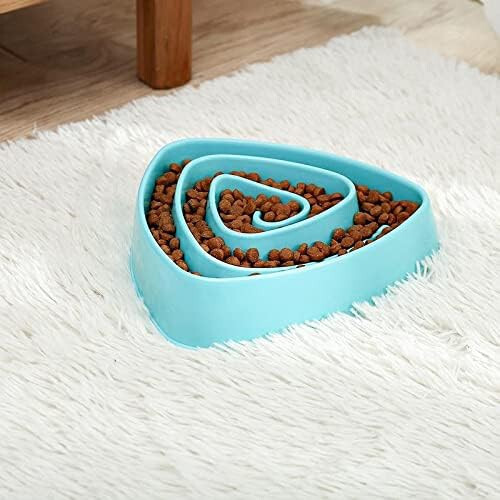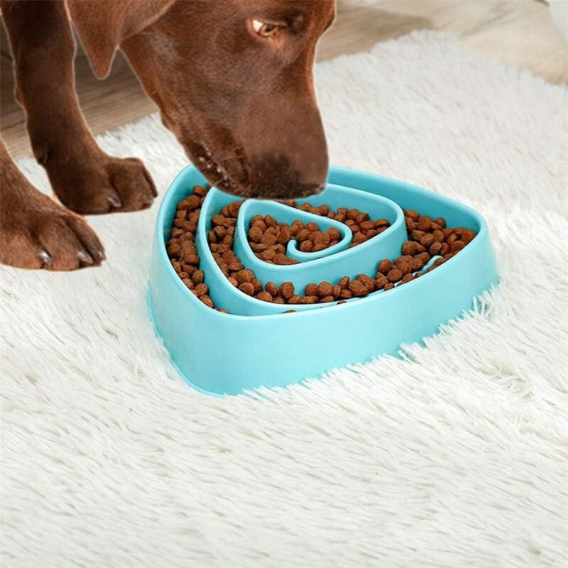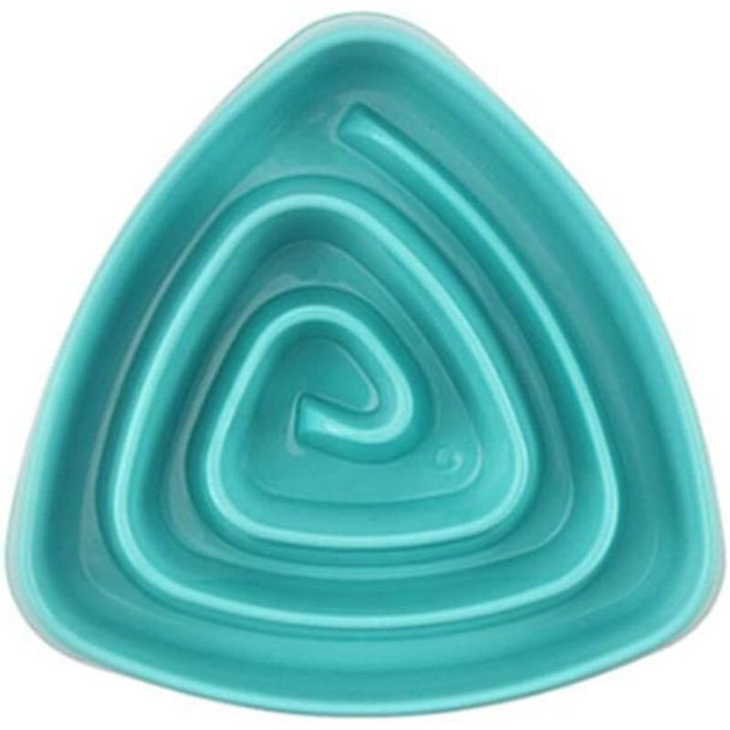 Dieser dreieckige, anti-Erstickungs-Futternapf mit langsamer Futteraufnahme ist die ideale Wahl für Haustiere, die langsamer und gesünder fressen sollen. Er besteht aus robustem Kunststoff, ist leicht zu reinigen und überzeugt mit seinem modernen, blauen Design. Maße: 29,5 x 30 cm