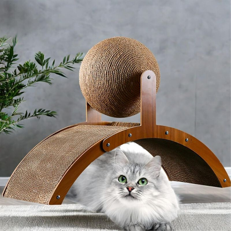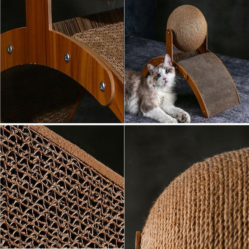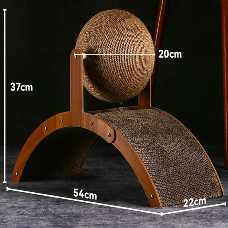 Robuster Sisal-Katzenkratzbaum mit Ball und geschwungenem Brückendesign, der den Kratztrieb Ihrer Katze befriedigt und sie unterhält. Der stabile Indoor-Kratzbaum (54×22×37 cm) ist ideal für kleine Katzen. Er schützt Möbel, ist leicht zu bewegen und umweltfreundlich gestaltet.