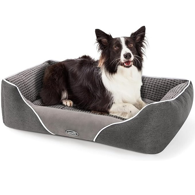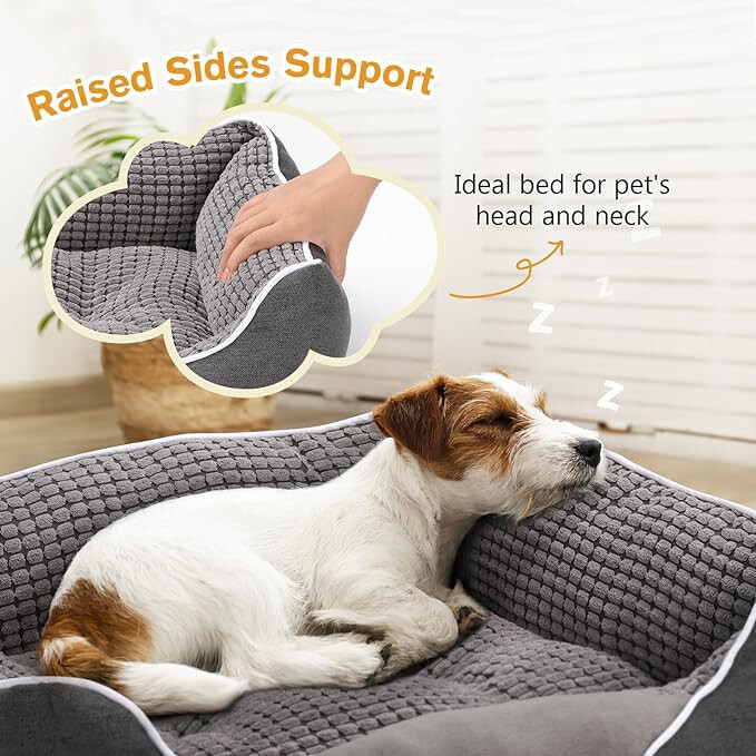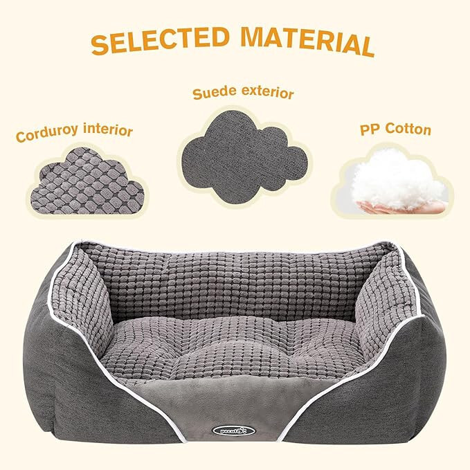 Größe: Groß Farbe: Grau Marke: pecute Empfohlene Sorten: Abnehmbarer Bezug Besondere Funktion: Abnehmbarer Bezug Material: Plastik Produktabmessungen: 80 x 66 x 23 cmBequemes Hundebett - Das Pecute-Hundebett besteht außen aus hochwertigem Mikroleder und verfügt über eine Innenseite aus Korallenvlies, gefüllt mit weichem Polyestergewebe, das Ihren pelzigen Freunden maximalen Komfort und Wärme bietet.ABNEHMBARES KISSEN - Das weiche Hundekissen kann vom Hundebett abgenommen werden, sodass es bei Bedarf separat gewaschen werden kann. Durch unterschiedliche Materialien auf beiden Seiten können beide Seiten des Hundesofas genutzt werden. Sie können Ihre Lieblingsseite ganz nach Ihrem Gefühl wählen.WEICHE SEITEN: Gut verarbeitete und gepolsterte Seiten bieten zusätzlichen Halt für Kopf, Hals und Rücken von Haustieren. Sie können sich vollständig dehnen und so Spannung und Druck wirksam abbauen.WASCHBAR - Leicht zu waschen und zu pflegen, das gesamte Bett im Schonwaschgang in kaltem Wasser waschen und bei niedriger Temperatur trocknen.BITTE BEACHTEN SIE: Dieses Hundebett wird für den Versand vakuumverpackt. Nach dem Auspacken kann es mindestens 24 Stunden dauern, bis sich das Bett vollständig entfaltet. Sie können auch den Stoffbezug auseinanderreißen, die Innenfüllung herausnehmen und leicht darauf klopfen, um schneller wieder seine beste Form zu erlangen!