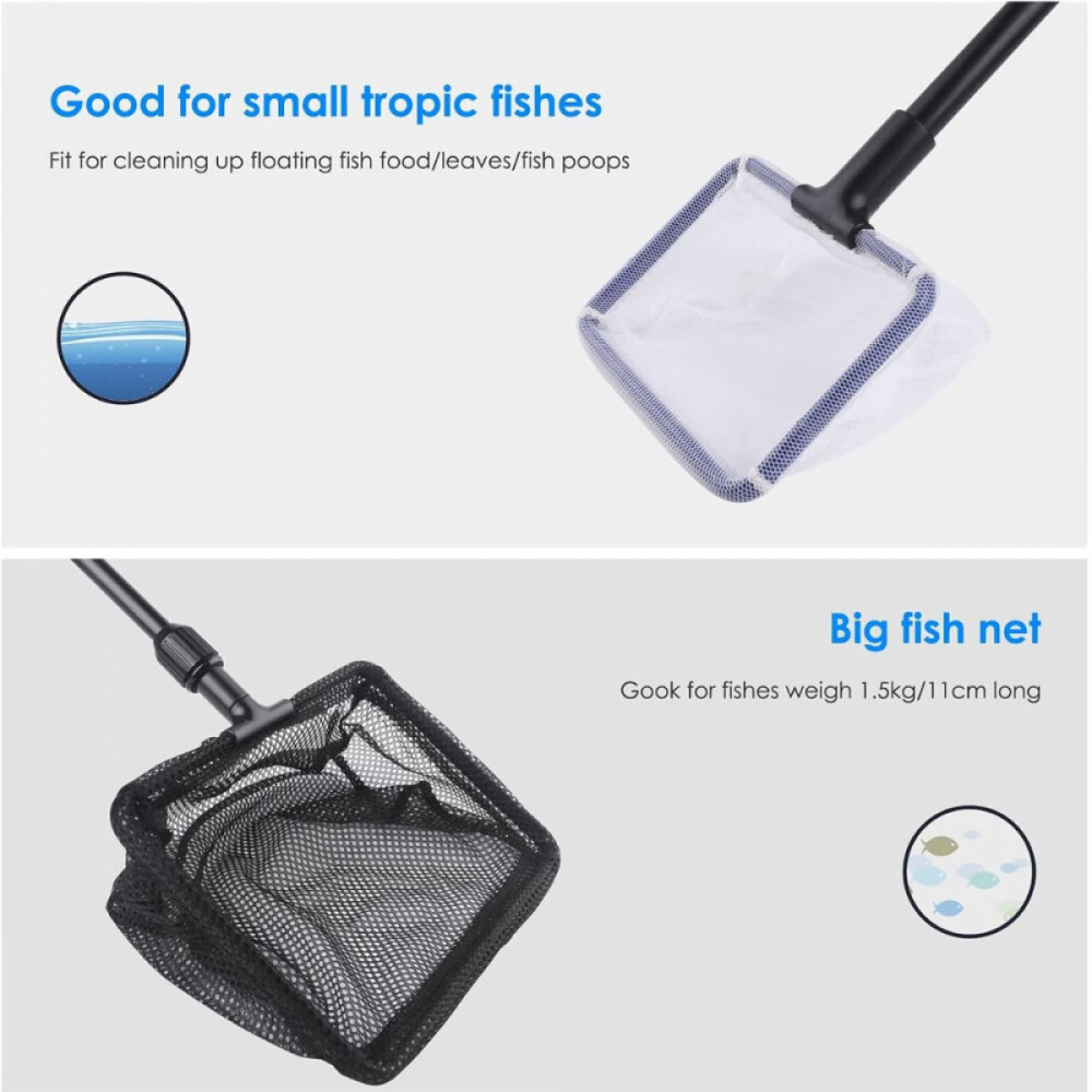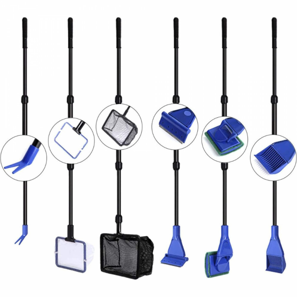 6 -in-1 Aquarium-Reinigungsset: Beinhaltet Aquarienpflanzenfort, Glasalgenschaber, Glasschwammbürste, Kiesrechen, Mini -Fischnetz für Schmutz, großes Fischnetz für Fische. Eine hervorragende Investition: Sie erhalten ein komplettes Set für die tägliche Reinigung.
