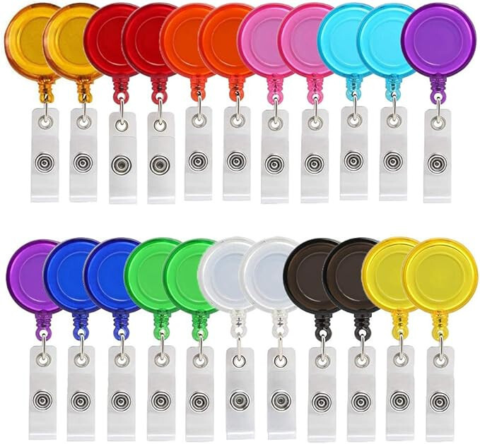 Produktmerkmale:Lieferumfang: 22 Stück, 11 Farben, farbige AusweishüllenMaterial: hochwertiger KunststoffGröße:75 cm lang, Durchmesser: 3, 2cmPraktisch: Rollclips ermöglichen ein einfaches Herausziehen des Namensschilds, mit Metallclips zum sicheren und einfachen Aufhängen am GürtelAnwendbar:Sie können diesen ausziehbaren Schlüsselhalter zum Aufhängen von Schlüsseln oder anderen kleinen Werkzeugen verwenden. Auch für Ausweise, Namensschilder, Kreditkarten, Namensschilder geeignet.