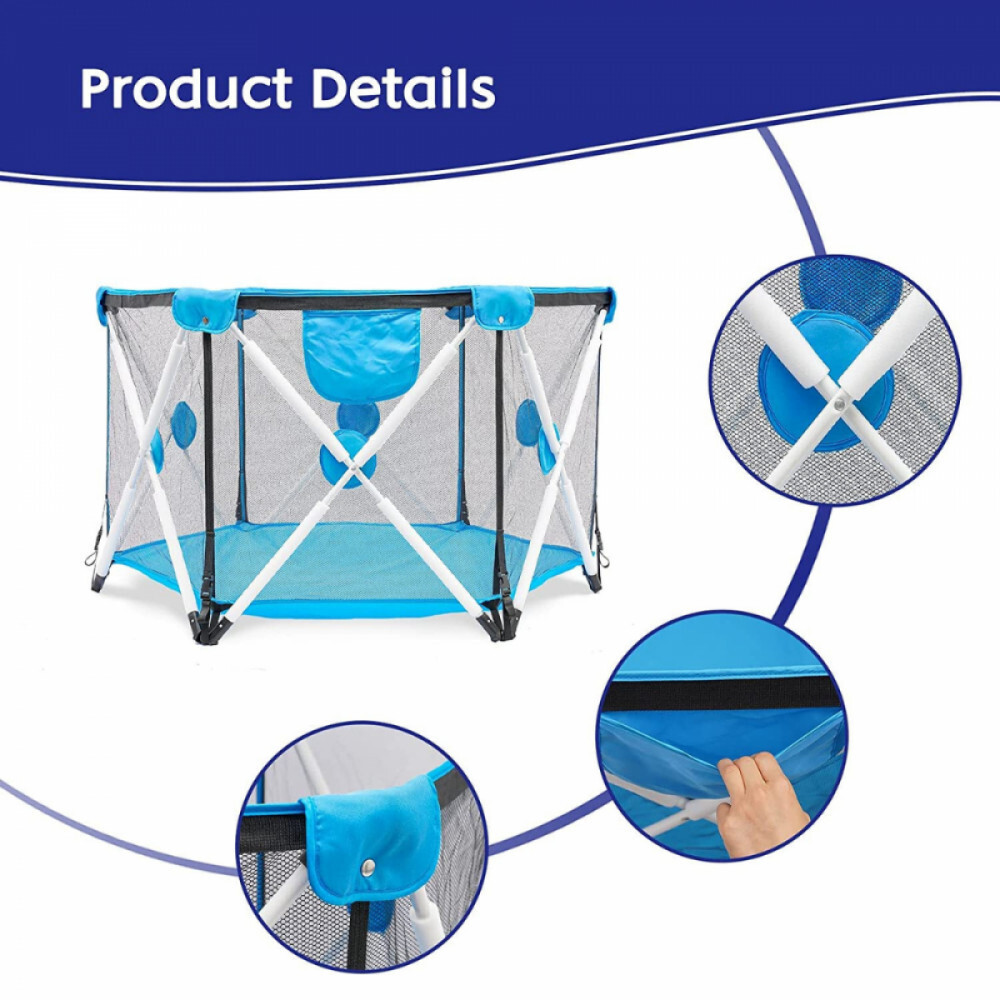Perfekte Details sorgen für die Sicherheit Ihres Babys: Verschlüsseltes, flexibles Netzdesign zur Vermeidung stickiger Hitze, die Mutter kann die Bewegung des Babys jederzeit beobachten; Nietendesign, verdickte Antikollisionsbaumwolle mit genieteten Stahlrohrverbindungen.