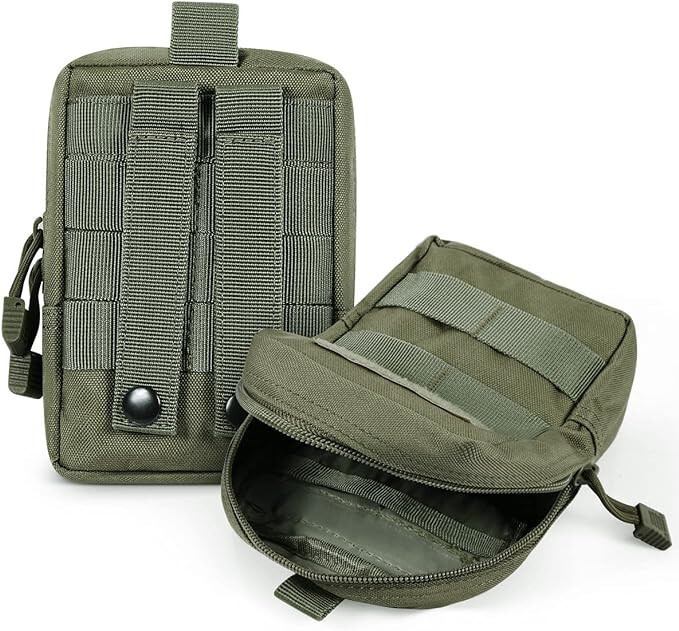 Die taktischen Taschen mit den Maßen 13 cm x 10,9 cm x 0,7 cm sind aus hochwertigem Nylon-Material gefertigt, das Langlebigkeit und Wasserbeständigkeit gewährleistet. Ideal zur Befestigung an taktischen Westen, Camping- oder Wanderrucksäcken sowie an anderen Ausrüstungsgegenständen. Das Reißverschluss-Design ermöglicht einfachen Zugriff, während die multifunktionalen Fächer eine optimale Raumausnutzung bieten.