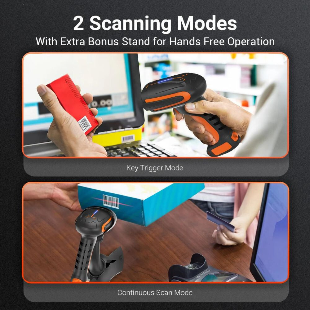 Diese Funktion ist für die meisten Barcodes geeignet, z.B. Code 39, Interleaved 2 of 5, Data Matrix, Codabar usw. 3 -in-1-Verbindung und umfassende Kompatibilität: Der Barcode-Scanner funktioniert mit Bluetooth (Entfernung: 30 m), 2,4G Wireless und USB-Kabel auch mit einer Verbindung.