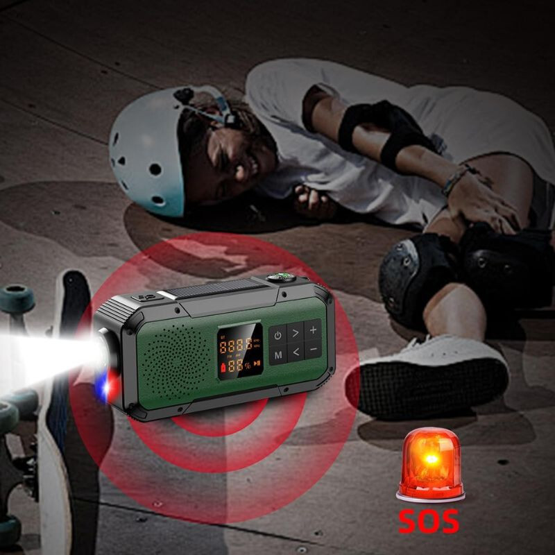 5-in-1-Funktion: Radio, Taschenlampe, Bluetooth-Lautsprecher, Powerbank, SOS-Alarm