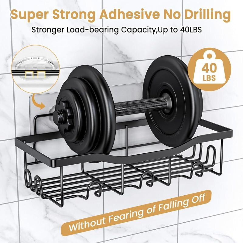 DerPKBD Duschregal-Set aus schwarzem Edelstahl – 5-teiligDie perfekte Lösung, wenn Sie Ihr Badezimmer oder Ihr Zuhause übersichtlicher, eleganter und praktischer gestalten möchten. Es ist einfach zu installieren, extrem langlebig und bietet jahrelangen zuverlässigen Einsatz.