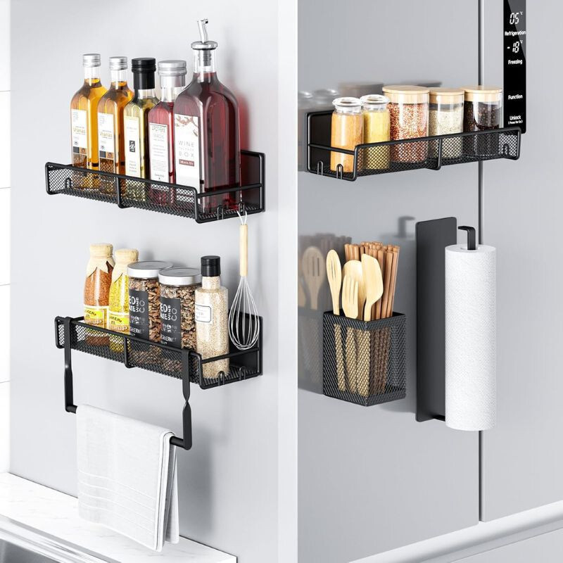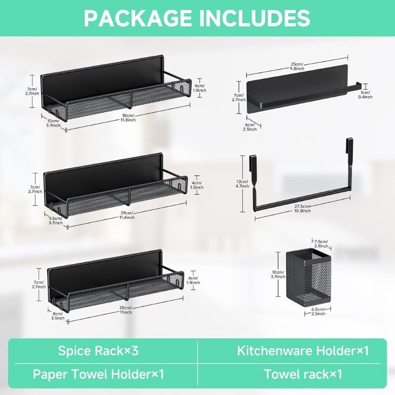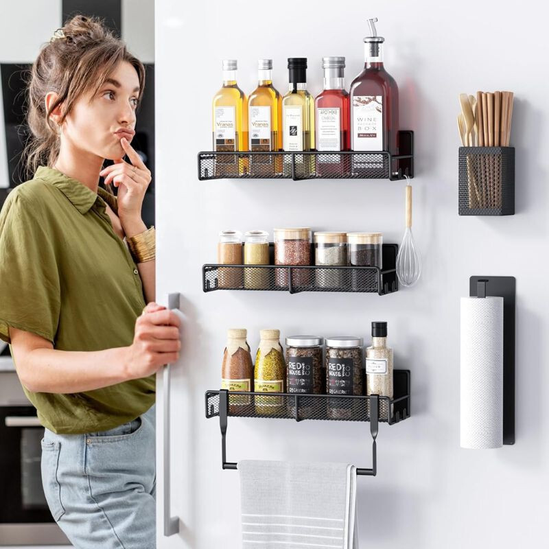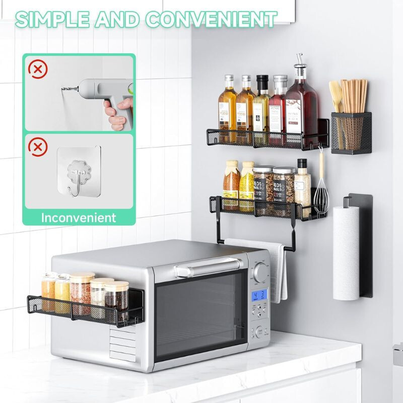 Praktisches Design: Das Set umfasst 3 Gewürzregale, 1Papierhandtuchhalter, 1Küchenutensilienhalter und 1 Handtuchhalter, die alle platzsparend und leicht zugänglich sind.