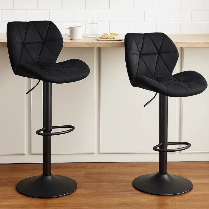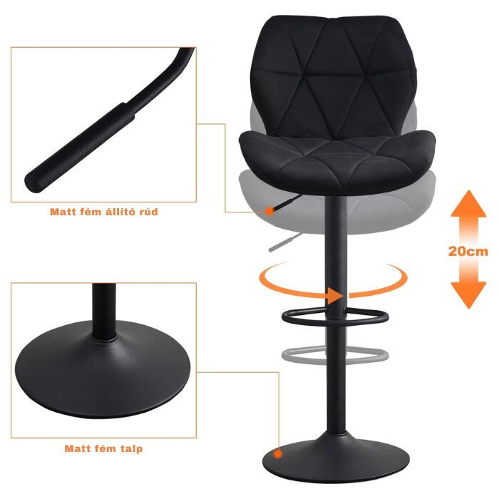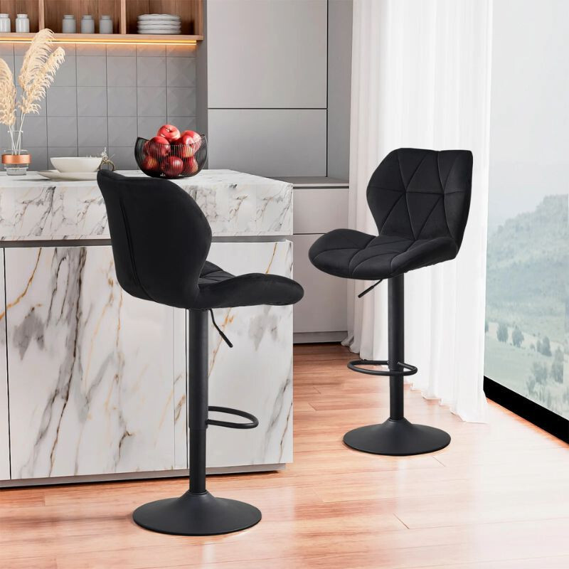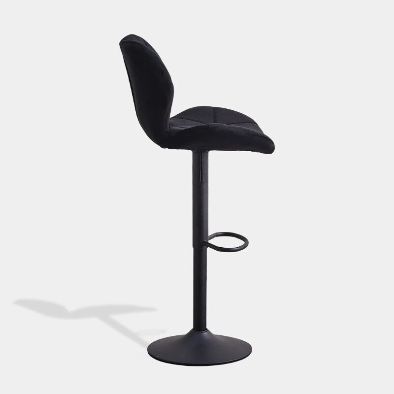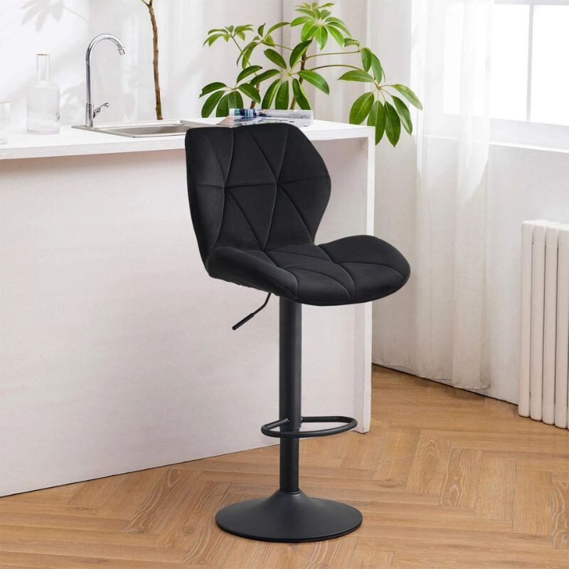 DER Dexter Barhocker eine perfekte Wahl für jeden Raum, in dem Stil, Komfort und praktische Funktionalität wichtig sind. DER schwarzer Samt und die moderne Metallbeine Sie verleihen ein elegantes Aussehen, während die 360°-Drehung Und Höhenverstellung ermöglicht eine personalisierte Nutzung. Die Stühle sind bequem, ergonomisch und ideal für jede Mahlzeit, Arbeit oder Entspannung. Kaufen Sie es jetzt und verleihen Sie Ihrem Zuhause oder Büro Stil!
