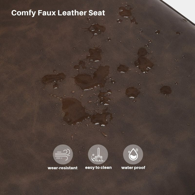 Modell: CalaisFarbe: BraunMaterial: Kunstleder, MetallFüllmaterial: SchaumstoffGesamtlänge (cm): 49Gesamtbreite (cm): 49Gesamthöhe (cm): 88,5Sitzhöhe (cm): 49Tragfähigkeit (kg): 100Gewicht (kg): 13Merkmale: GepolstertArtikelnummer: 2Montage erforderlich: Ja