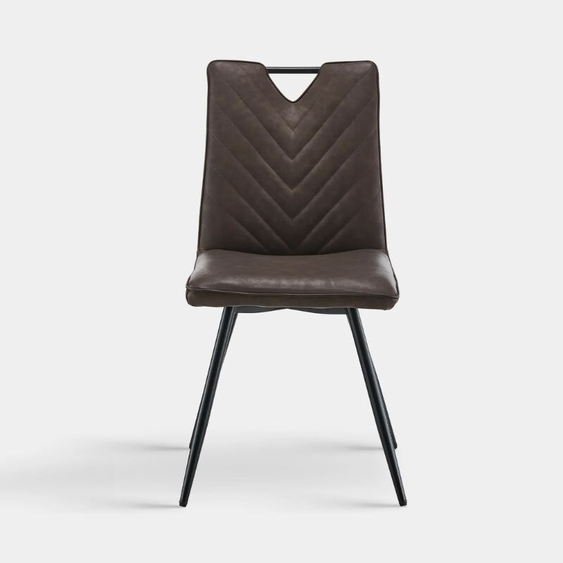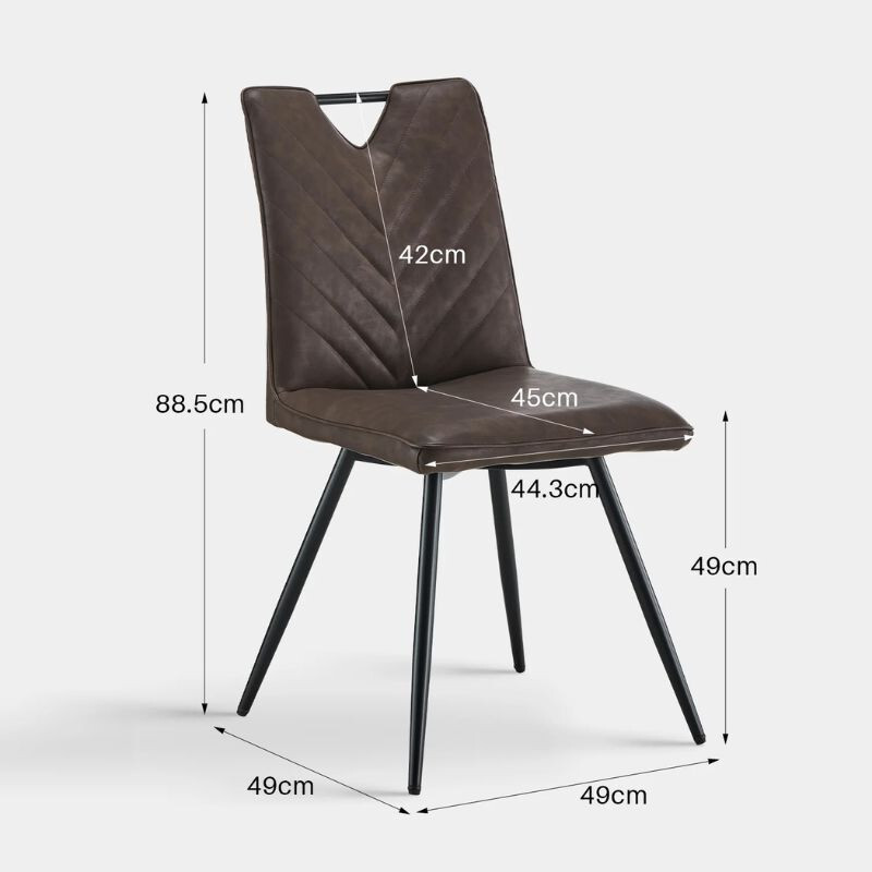 Aktualisieren Sie Ihr Esszimmer mit Calais Esszimmerstuhl mit Griffen mit einem Set! Das Set besteht aus zwei braunen Kunstleder umfasst einen gepolsterten Stuhl mit elegantem, modernem Design und einem bequemen Griff. Dauerhaft Metallrahmen und ergonomisches Design sorgt für einen bequemen Sitz. Perfekte Wahl für Esszimmer, Küchen oder sogar Büros.