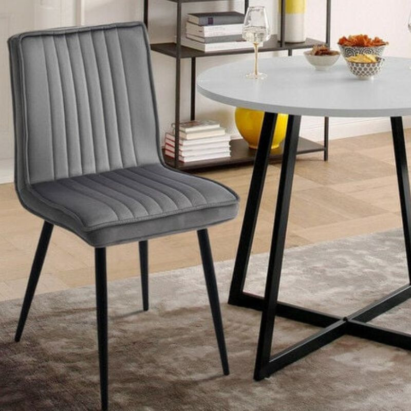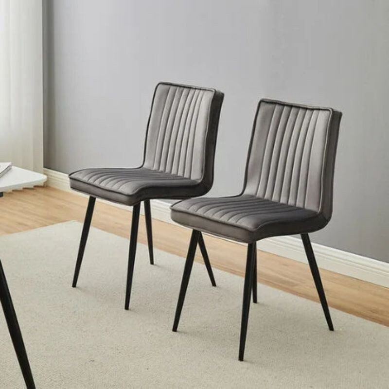 Esszimmerstühle, 2Samt-Esszimmerstühle, gepolsterter Sitz mit schwarzen Metallbeinen, Grau