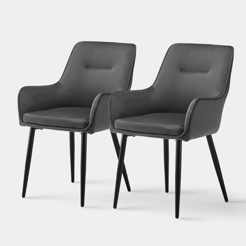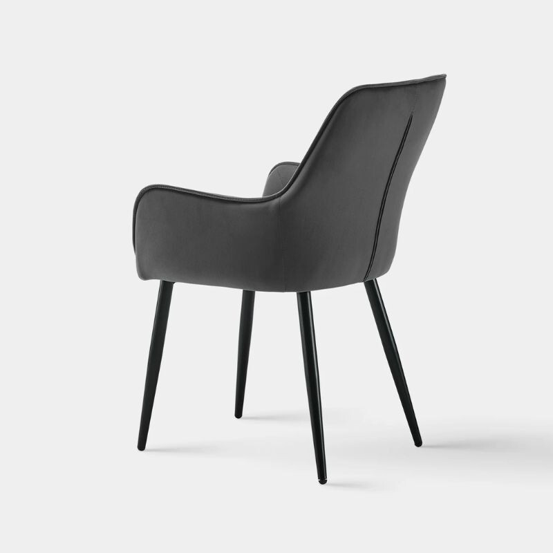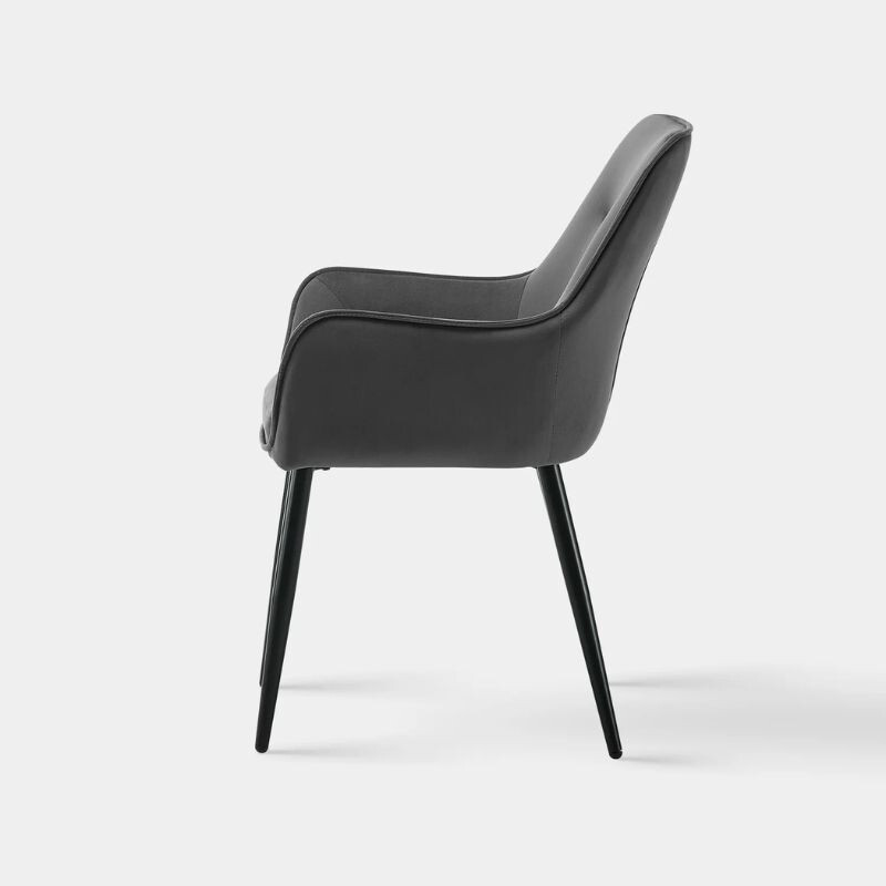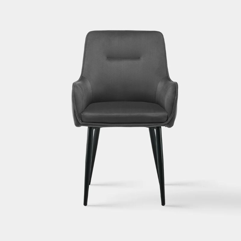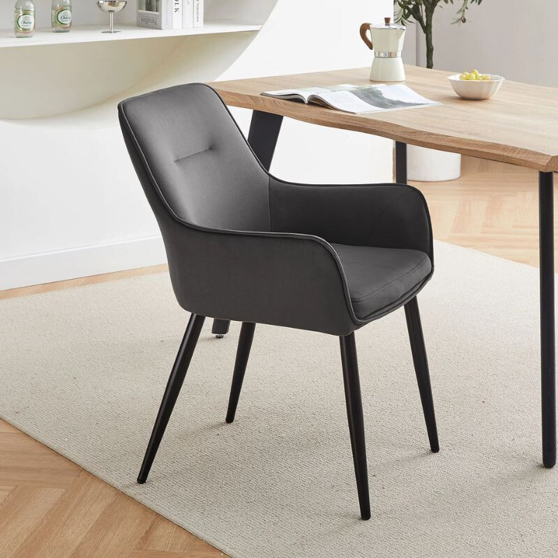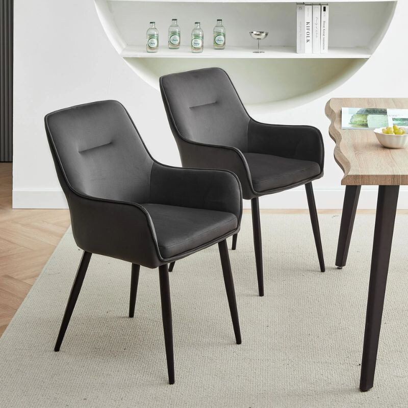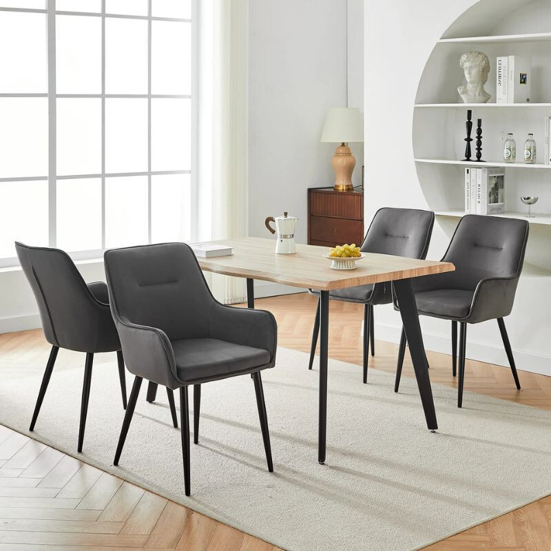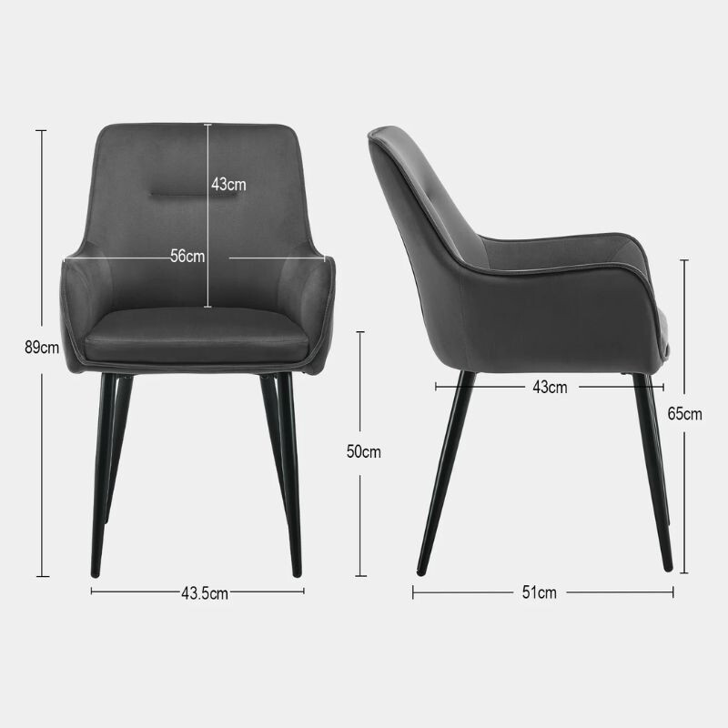 DER Maxine Esszimmerstuhl aus Samt eine elegante und komfortable Wahl für jedes Interieur. Weiche Samtpolsterung Und ergonomische Armlehne bietet maximalen Komfort, während die solide Metallbeine sie garantieren Stabilität. Abmessungen: 43, 5cm lang, 51 cm breit, 89 cm hoch, Sitzhöhe 50 cm. Farbauswahl: grau. Ideal für Esszimmer, Wohnzimmer oder Büro.