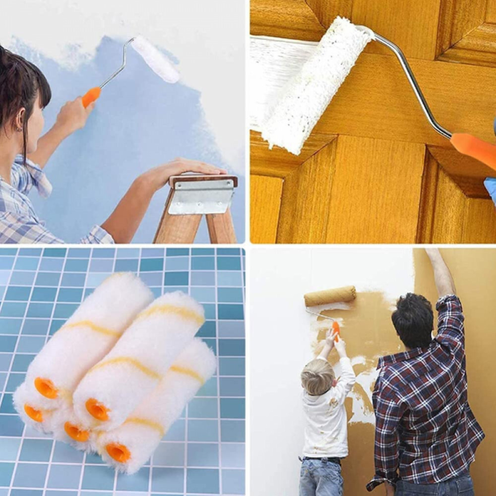 Das 13-teilige Set enthält alles, was für ein effizientes und sauberes Malerprojekt benötigt wird. Die mittelplüschigen Rollen eignen sich perfekt für halbglatte Oberflächen, wie alte verputzte Wände oder Bereiche mit Reparaturspuren. Der ergonomische, rutschfeste Griff sorgt für eine angenehme Handhabung und erleichtert die Arbeit, selbst über längere Zeiträume hinweg.