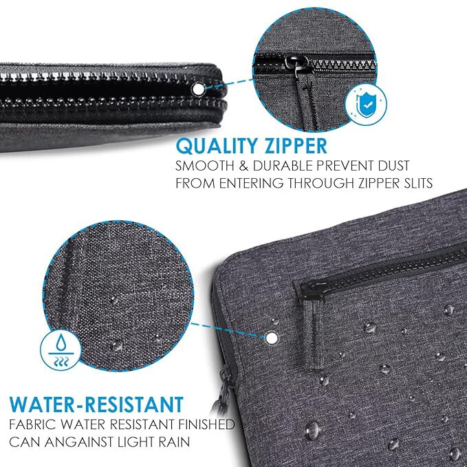 Für 14-Zoll-Laptops. Außengröße: 37 x 26 x 1, 9cm, Innengröße: 36 x 25 x 1, 7cm (L x B x H). Kompatible Laptopgröße: 14 Zoll. (: Die Länge und Breite des Laptops sollte etwas kleiner sein als die Länge und Breite der Laptoptasche, dann ist sie geeignet. Wir empfehlen Ihnen, vor dem Kauf Ihr Laptopmodell zu messen und es mit der Größe der Tasche zu vergleichen!; )Premium Qualität.Die Eono-Laptoptasche mit wasserabweisendem Material, stoßdämpfendem Kissen und weichem, flauschigem Futter bietet umfassenden Schutz vor Staub, Spritzern, Kratzern und Stößen. Verwendete schlichte, aber haltbare Reißverschlüsse.Einfach zu bedienen und tragbar. Die Eono-Laptoptasche ist mit einem geformten Kunststoff-Reißverschluss ausgestattet, der sich sehr sanft öffnet/schließt und viel langlebiger ist als Nylon-Reißverschlüsse. Durch das schlanke und leichte Design lässt es sich problemlos in einer Aktentasche oder einem großen Rucksack verstauen.2 Fächer:Laptopfach + Ein Fach zur Aufbewahrung von Maus, Kabel, Ladegerät und anderen Kleinteilen, ideal für den Transport eines Laptops und anderer praktischer Gegenstände.