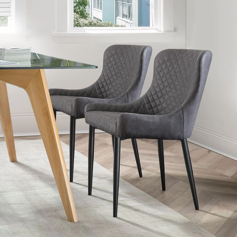 Bringen Sie Eleganz und Funktionalität in Ihr Zuhause Dundas mit Esszimmerstühlen aus grauem Kunstleder! Dieses zweiteilige Set ist mit seinem modernen Aussehen, dem komfortablen Design und der Verwendung langlebiger Materialien die perfekte Wahl für eine Küche, ein Esszimmer oder sogar ein Arbeitszimmer. Die Stühle sind leicht zu reinigen Polsterung aus PU-Leder Und sie verfügen über eine solide, stabile Struktur, die auch langfristig für hervorragenden Komfort sorgt.