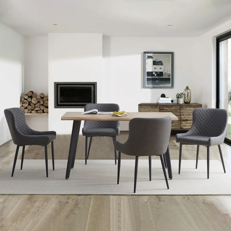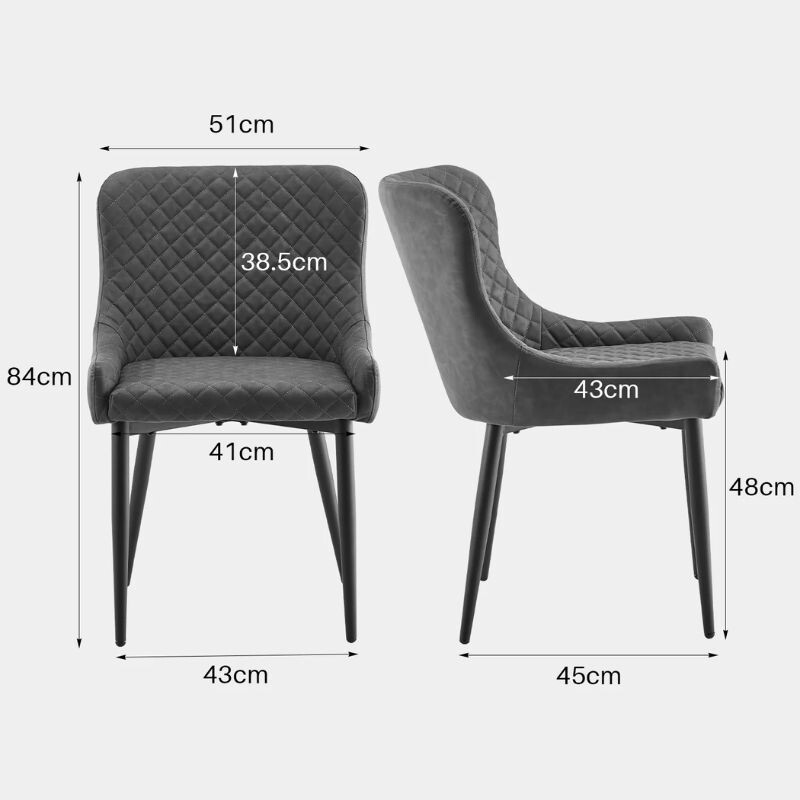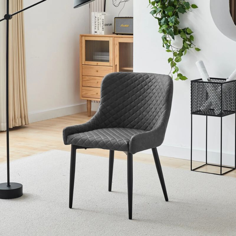 DER Dundas graue Kunstleder-Esszimmerstühle Durch ihr modernes, minimalistisches Erscheinungsbild passen sie perfekt in jeden Wohnstil. Die elegante graue Farbe und das klare Design lassen sich perfekt mit anderen Möbeln kombinieren, sei es aus Holz, Glas oder Metall. Das komfortable Design und die langlebigen Materialien machen diese Stühle ideal für den täglichen Gebrauch oder besondere Anlässe.