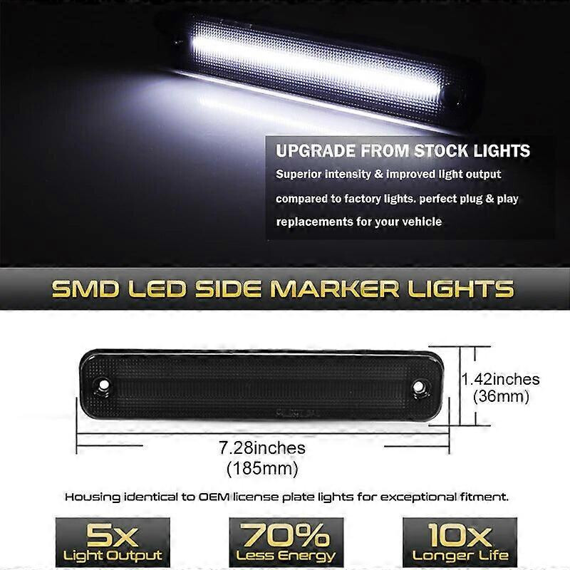 Dieses LED-Seitenmarkierungsleuchten-Set mit getöntem Glas wurde speziell für die Hummer H2-Modelle 2003–2009 entwickelt. Insgesamt 180 Hochleistungs-SMD-LEDs sorgen für bernsteinfarbenes Licht vorne und rotes Licht an den hinteren Kotflügeln und erhöhen so mit einem starken Lichtband die Sichtbarkeit und Sicherheit. Es bietet eine einfache „Plug-and-Play“-Installation für ein modernes, dynamisches Aussehen.