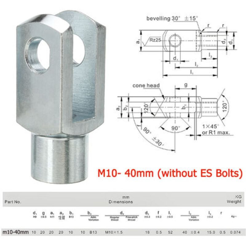 1 Paar Gasfeder-Endbaugruppen, Caberre, M10-40 mm, ohne ES.