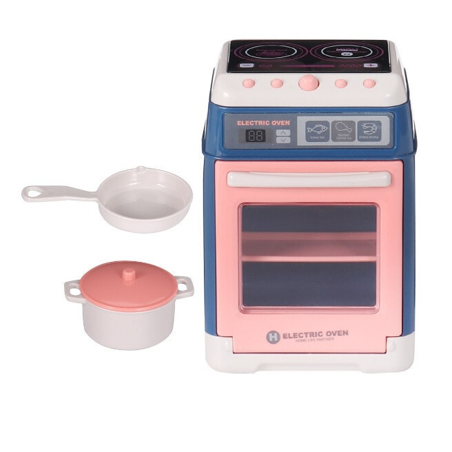 Kinderspielzeugofen mit Geräuschen, Lichtern, 2Zubehörteilen (Pfanne, Beine).