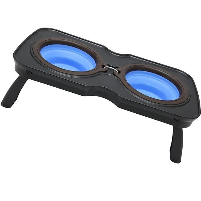 Faltbarer, tragbarer Reise-Futternapf für Haustiere, faltbares Doppelnapf-Design ist auch für den Außenbereich geeignet.