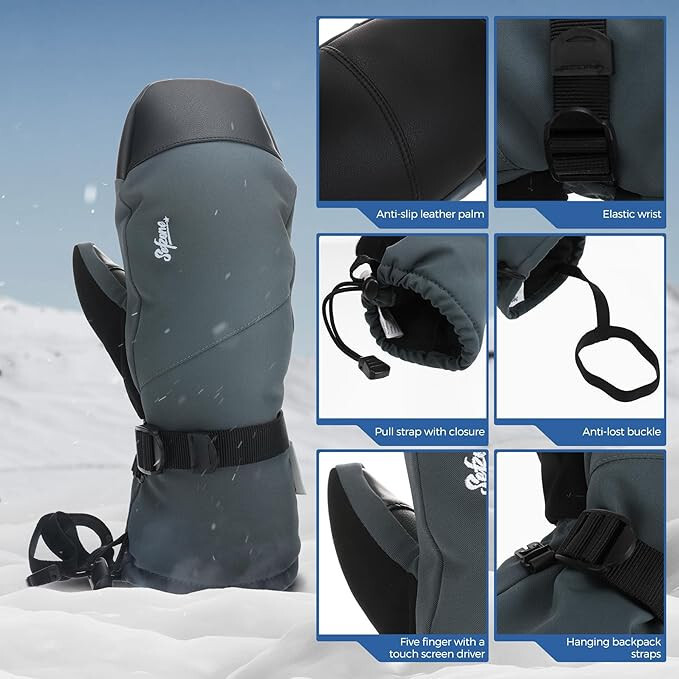 Sefzone wasserdichte Skihandschuhe, 3M Thinsulate isolierte Winterhandschuhe für Männer/Frauen, Touchscreen-kompatibel, Anti-Verlust, Schneehandschuhe zum Snowboarden, Schneerodeln, Schneepflügen.