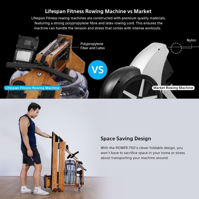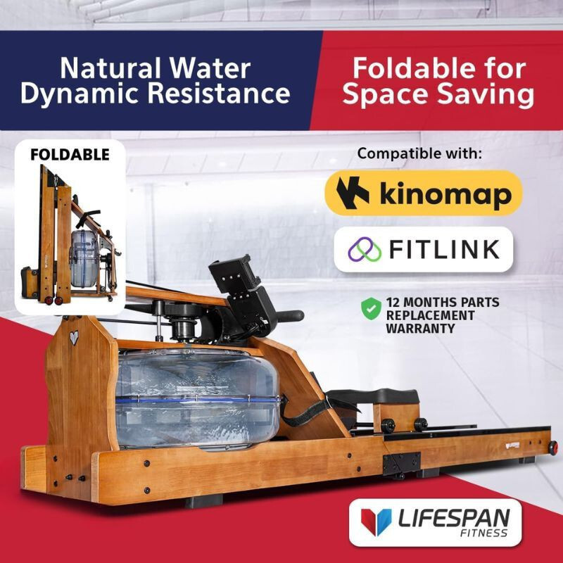 Lifespan, vízellenállásos fa evezőgép– Genießen Sie das echte Wasserruder-Erlebnis zu Hause! Der Naturholzrahmen, das LCD-Display und das faltbare Design machen es ideal für enge Räume. Eine großartige Wahl für ein stilvolles Ganzkörpertraining.