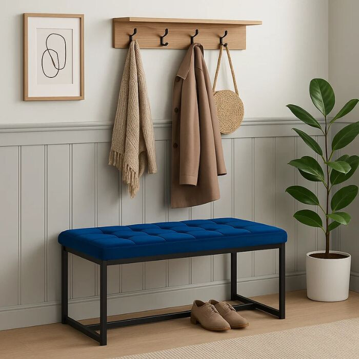 Mit ihrem zeitlosen Design, den klaren Linien und dem modernen Erscheinungsbild passt die Bank problemlos in verschiedene Layouts, sei es klassisch, minimalistisch oder modern. Die weiche und angenehm anzufassende Samtpolsterung sorgt nicht nur für ein ästhetisches, sondern auch für ein bequemes Sitzgefühl, während die stabile Struktur und die soliden Beine eine langfristige Nutzbarkeit gewährleisten.
