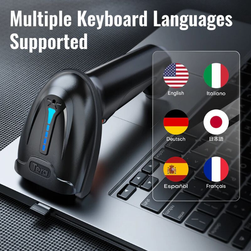 DerTera 5100 Laser 1D Kabelloser BarcodescannerEs ist ideal für Geschäfte, Lager, Büros und Logistikzentren und nutzt Hochleistungslasertechnologie, um die gängigsten 1D-Barcodes schnell und genau zu lesen, einschließlich beschädigter, verschwommener oder verblasster Codes.