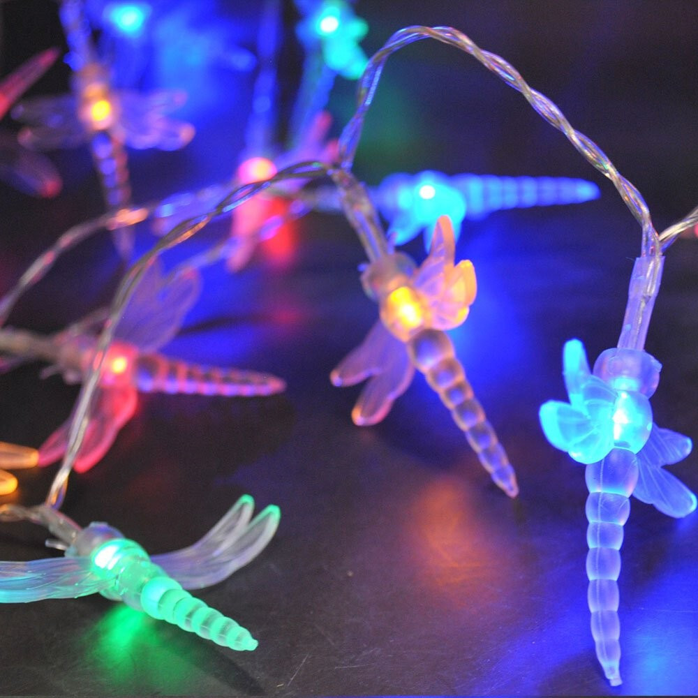 Solar -Libellen-LED-Lichterkette, die so aussieht, als ob echte leuchtende Libellen Ihre Umgebung schöner machen würden.
