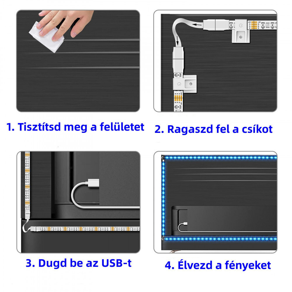 Einfach zu installierende HintergrunStckeleuchtung für den Fernseher.Kleben Sie es auf, schalten Sie es ein und schon werden selbst die besten Filme besser.